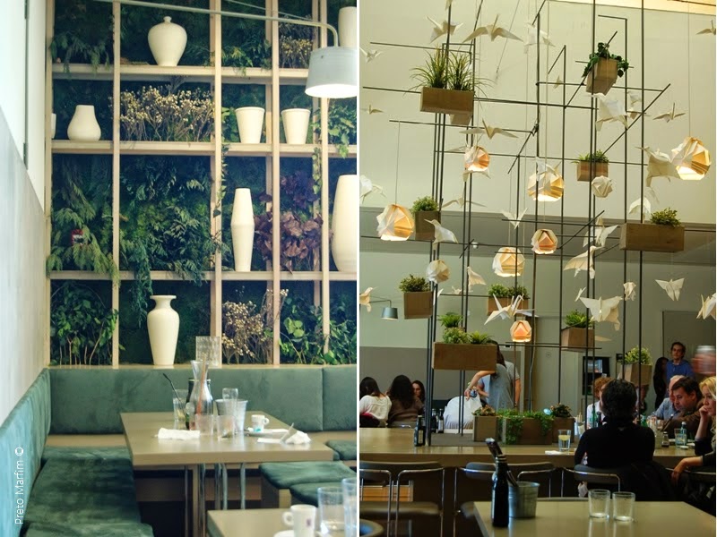 A decoração? Origamis a voar e paredes revestidas a vegetação!